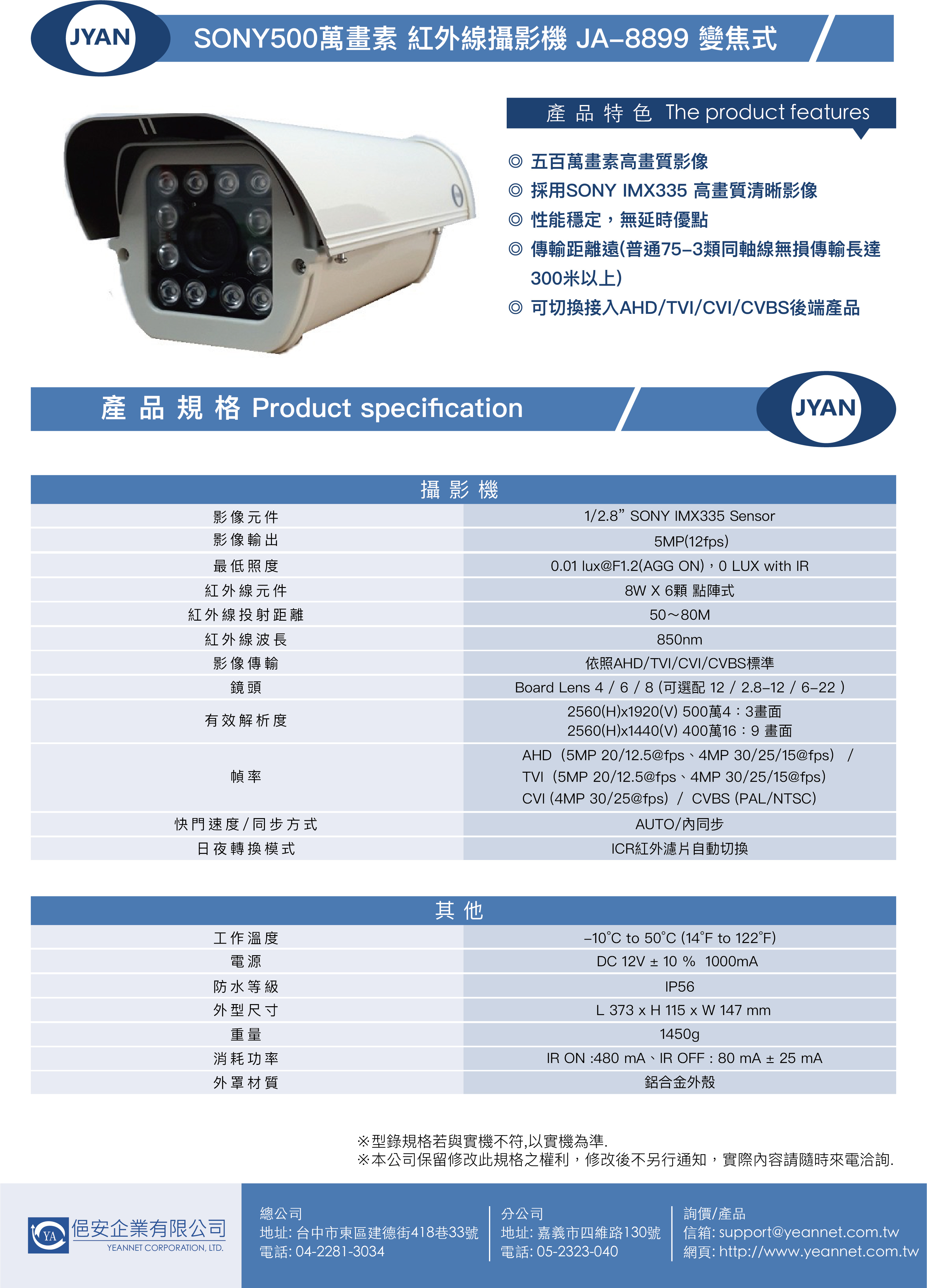 JYAN 致仰 500萬 變焦防護罩型攝影機6-22mm 四合一 JA-8899