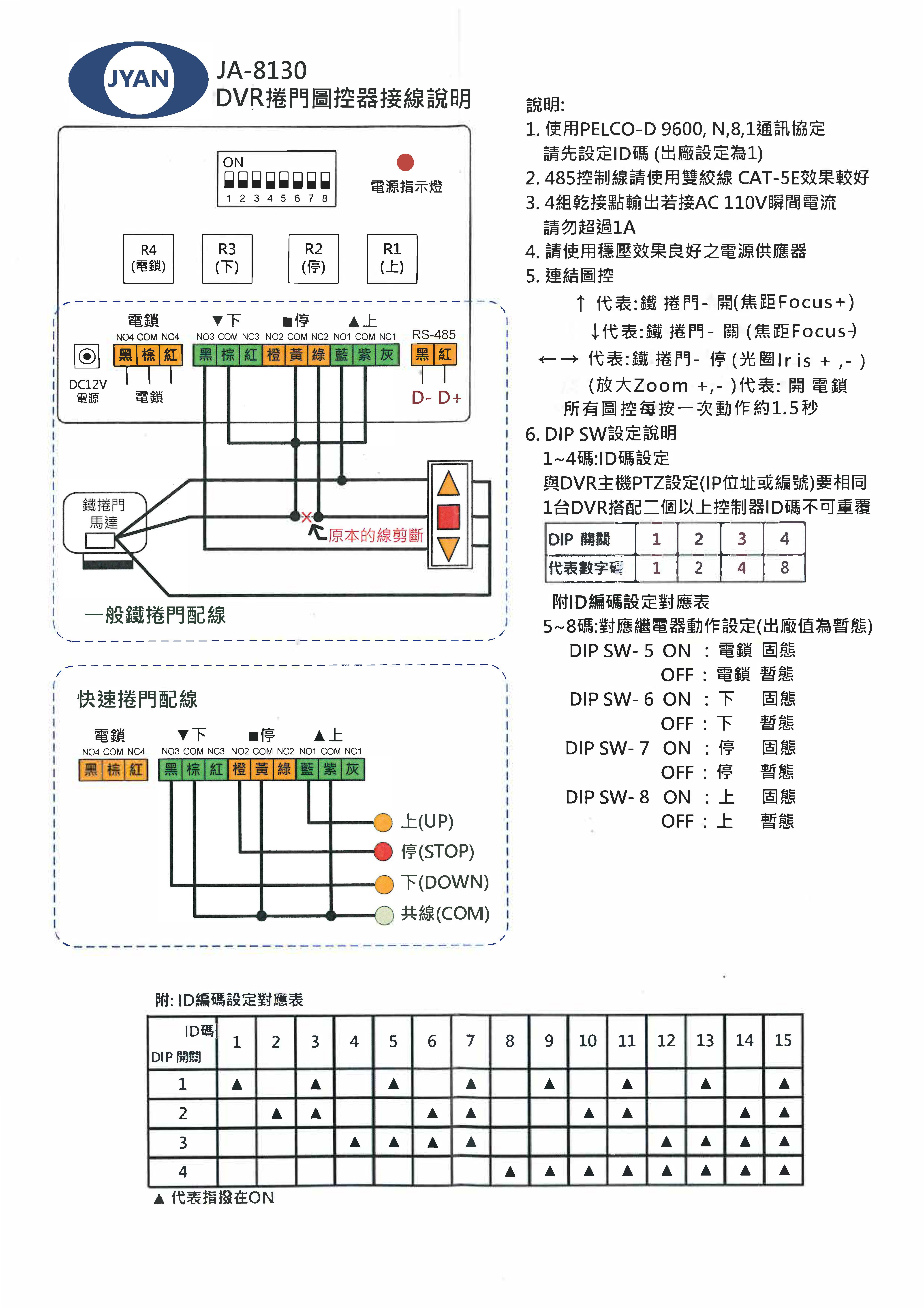 JYAN致仰  JA-8130 DVR鐵捲門控制器 監控主機捲門圖控器 鐵捲門控制器