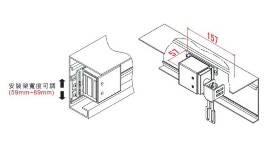 • 本體安裝架可調( 59mm~89mm ),可搭配多種自動門鋁槽使用。