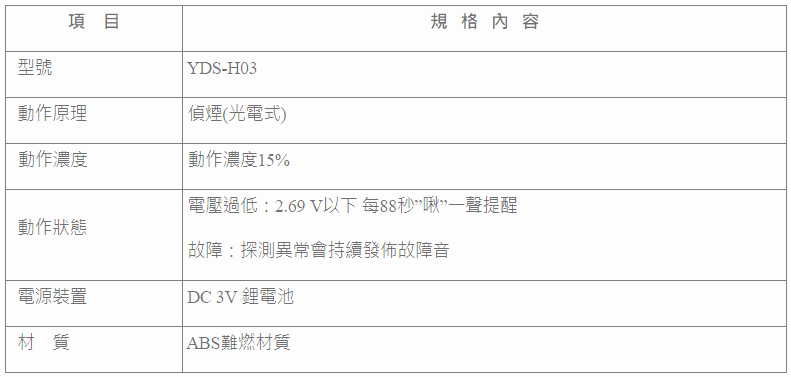 TYY 永揚 光電式偵煙警報器 (含3V鋰電) YDS-H03